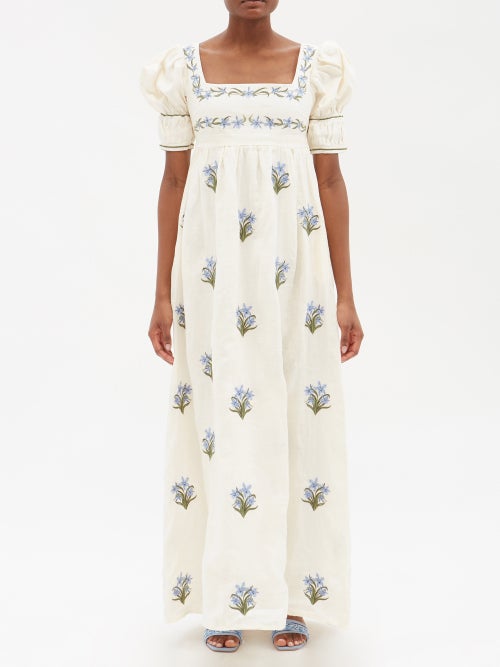 Agua By Agua Bendita Agua By Agua Bendita Floral Embroidered Puff Sleeve Linen Maxi Dress Womens White Multi Renoon